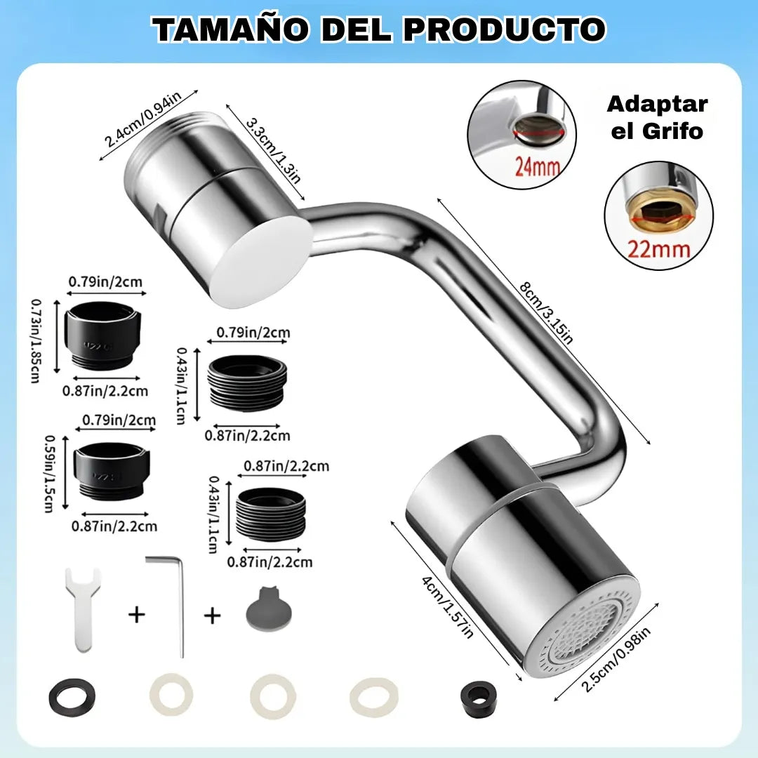 🔹 Funciones: Giro 360° + 2 modos de agua (chorro y ducha)